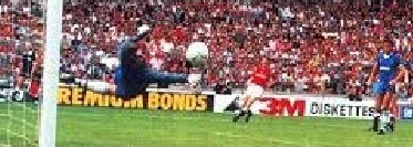 The first FA Cup semi-final had been drawn, 3-3 (2-2), a.e.t., at Manchester City’s ‘neutral’ Maine Road, on April 8th, 1990. A cross from midfielder, Rick Holden, right edge of the 18 yard box, pushed away by Scot’s ‘keeper, Jim Leighton, only got as far as center back, Earl Barrett; tapping in on 5 minutes, 0-1. Bruce, sliding in decisively near the halfway line to beat center forward, Ian Marshall, to a loose ball, it ran on to Webb, who angled a pass into space, behind the defence. Robson, marauding, striking the ball, right-footed. Despite ‘keeper Jon Hallworth’s almost blocking it, trickling over the line; inside the left upright, on 29 minutes, 1-1, at half-time.