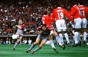 On November 19th, 1991, at Old Trafford, in the European Super Cup Final, Red Star Belgrade were beaten, 1-0. McClair, edge and center of the 6 yard box, right-footed, left corner, low, in the 67th minute, after Webb’s strike hit the right post, midway up, and rebounded. Not until the emergence of Giggs, Wales’ left wing, elegant dancer by the bylines, coming on as a 71st minute substitute, would Alex feel comfortable with the idea of selecting paired wingers.