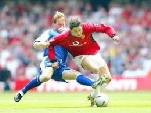 Despite the club finishing 3rd, the team won the 2004 FA Cup Final at the Millennium Stadium on May 20th, 3-0, against ‘The Lions’ of Millwall, Bermondsey, South East London, with Fletcher in central midfield alongside Keane. Ronaldo, center, just outside the 6 yard box, headed in a Gary Neville chip from outside the 18 yard box, right, to give the side the lead in the 44th, 1-0. Nistelrooy, scoring the second goal on 65 minutes, from the penalty spot, top left corner, after Millwall’s central midfielder, Dave Livermore, ended a right wing run by Giggs, bringing him down inside the 6 yard box, right side, also got the third in the 81st. After a ball from Scholes, along the left touchline to left winger, Giggs, who cut inside, running into the 18 yard box, left, before driving a low cross into the penalty area, finding Ruud three yards out; a ‘surgical strike’, 3-0. Nistelrooy was the only goalscorer into double figures in the league that season, 31+1 (20).